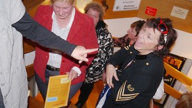 Von der Bühne prasselte ein Feuerwerk an skurrilen und schreiend komischen Momenten auf die Zuhörer nieder, die aus dem Lachen nicht herauskamen. Margie Kinski schlüpfte auch schon mal in die Rolle der "Maria", eine ihrer Freundinnen, und gab immer wieder überzeugende Kostproben ihrer italienischen Muttersprache, z.T. in aberwitzigem Tempo!
