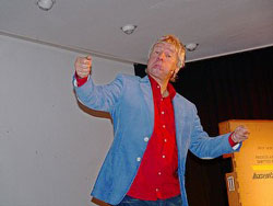Seine grandiose Leistung an diesem Abend war vor allen Dingen, von der Höhlenmalerei zu den Pharaonen, über Griechenland zum alten Rom, seine Sichtweise der Kulturgeschichte bis in die heutige Zeit darzustellen. Geprägt durch seinen Humor und eine gestenreiche und ausdrucksstarke Vortragsweise gelang es ihm mühelos, das Publikum von seinem speziellen und teilweise auch skurrilen Blick auf die Kunst zu überzeugen. Seine Sicht der Dinge brachte er gut begründet und provokant auf die Bühne: "Das Bild muss für sich sprechen, aber meistens sagt es einem nichts".